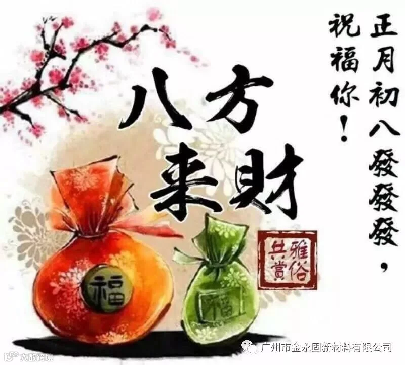 大年初八開工大吉接財神。今天是一年最重要的開工招財轉運日,祈求一整年,貴人多多,財源多多,健康多多,業績多多,步步高升,旺旺旺,發發發,广州市金永固新材料有限公司恭祝大家:财源广进,大吉大利,万事如意 心想事成!