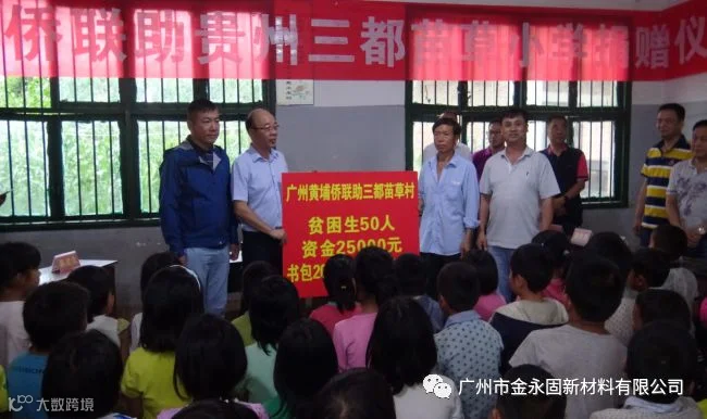 在本次捐赠活动中,广州市黄埔区侨联爱心人士共资助苗草村建档立卡贫困户学生50名,每人补助标准为500元,共计25000元,此外还捐赠书包(内含文具等)250个。