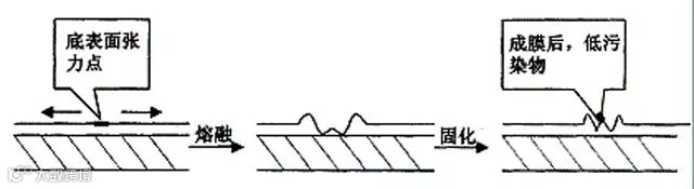 涂膜从低表面张力点流到高表面张力点形成缩孔 ,一般低表面张力点可能是加工过程中的灰尘、油滴等,也可能是未被充分润湿的粉料。