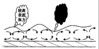 桔皮是粉末涂料成膜过程液体流动的一种局部涡流效应,也称着贝纳德的旋涡,这是由于粉末涂料熔融时粘度变化导致了表面张力的变化,这样便形成高粘度低表面张力的涂液下沉至涡流的中间(即后来的凹陷部位);低粘度高表面张力的涂液上升至涡流的周边(即后来的凸处部位)。