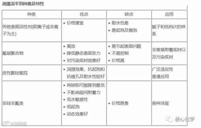 表面控制助剂的种类和作用包括: