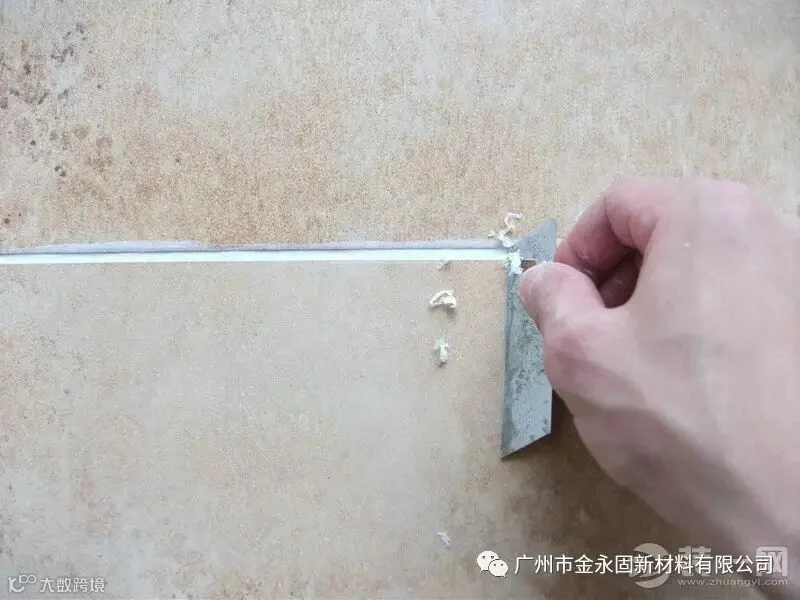 1、清理瓷砖缝隙,大约0.8mm的凹槽,凹槽两侧露出瓷砖边。