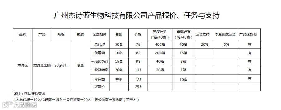 (5)所有总代、代理商及一、二级经销商、零售商,必须拿到授权书,杰诗蓝公司才承认其销售杰诗蓝产品的合法性,否则,当假货处理。