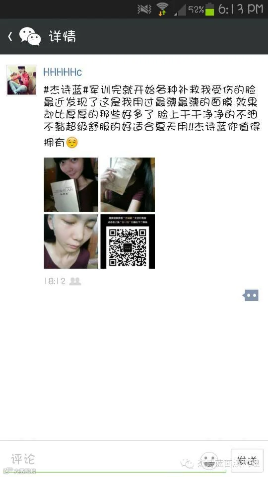 某宅男女神私下一直强调:“买面膜一定要选适合自己的,而不是选贵的”!她用过各种品牌的面膜,觉得杰诗蓝的性价比最高,补水保湿效果很赞,适合随时随地来一张,在女神的推荐下,我用了一段时间杰诗蓝蚕丝面膜舒缓调理,补水喝控油效果确实杠杠的!