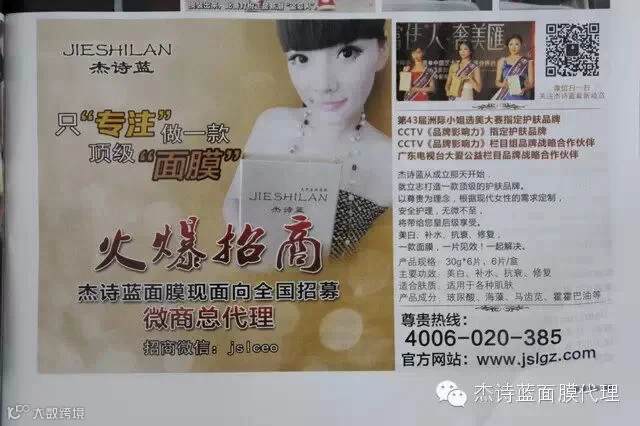 2014年8月20日,奢华高大上的杰诗蓝面膜,跃身荣登2014年度南都娱乐周刊第31期,于第39页精彩绽放,本期2000万份的报刊发行量,势必带来一场震撼神经的视觉体验!