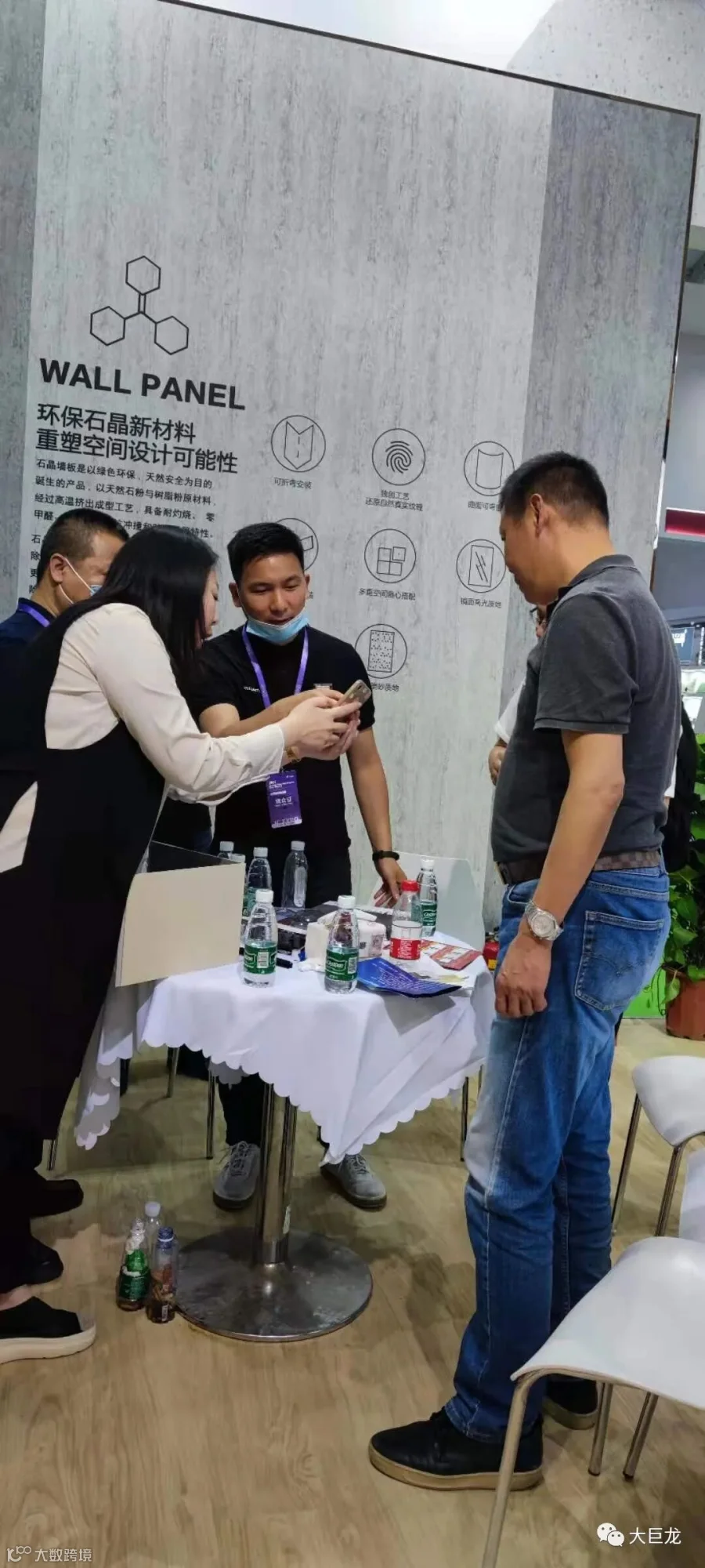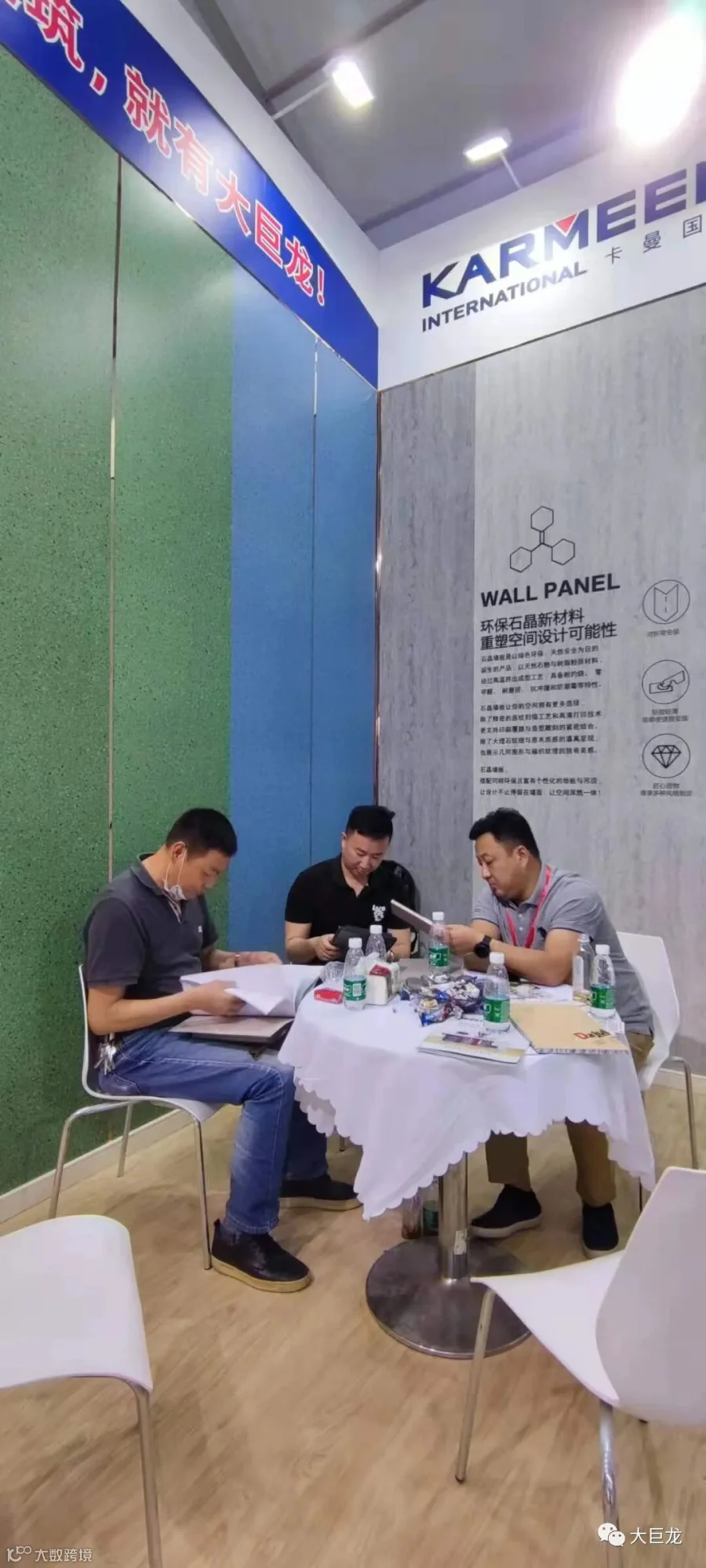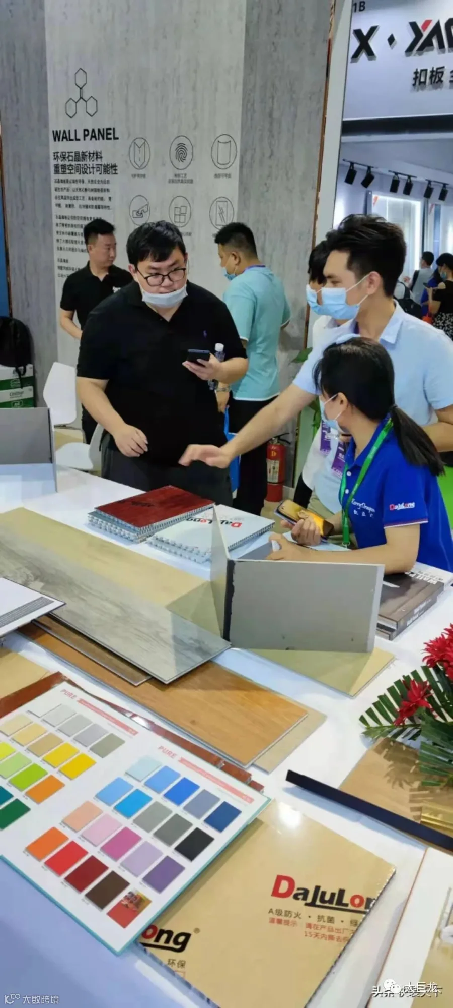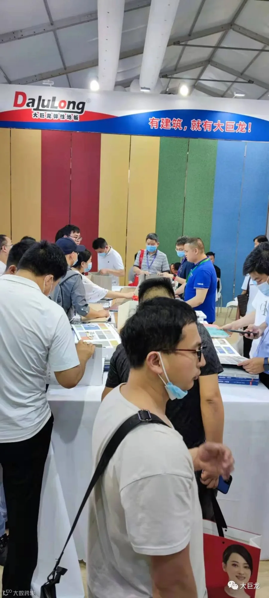 大巨龙集团董事长从搭建展馆开始就非常重视,今天亲临现场向来宾推介旗下石晶墙板新产品。期间,中吊顶协会秘书长刘春、中国弹性地板协会秘书长马金、中国快装产业协会秘书长刘亚勋等行业领导先后莅临大巨龙展台参观指导。