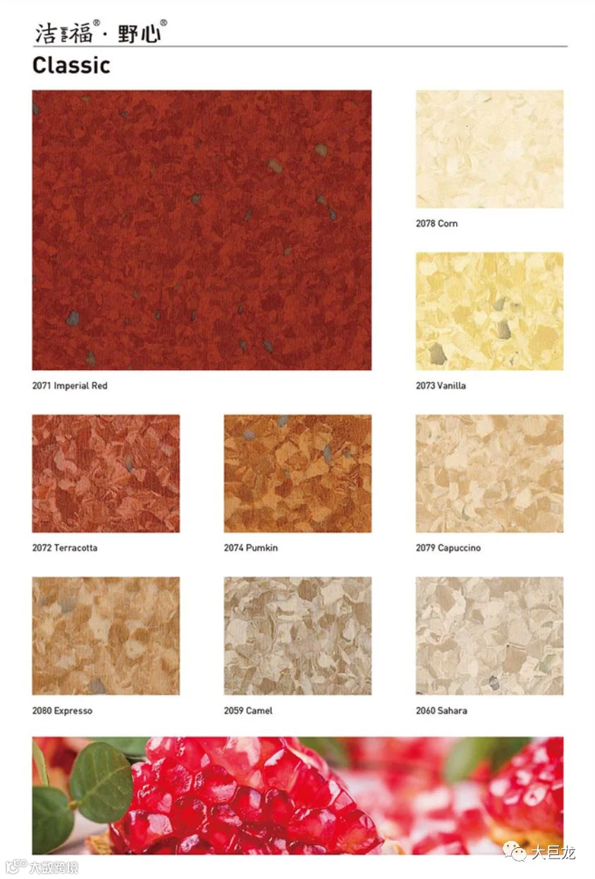 洁福®野心®同质透心地板色彩丰富,不仅能满足专业行业需求,更能满足多方面的设计需求。