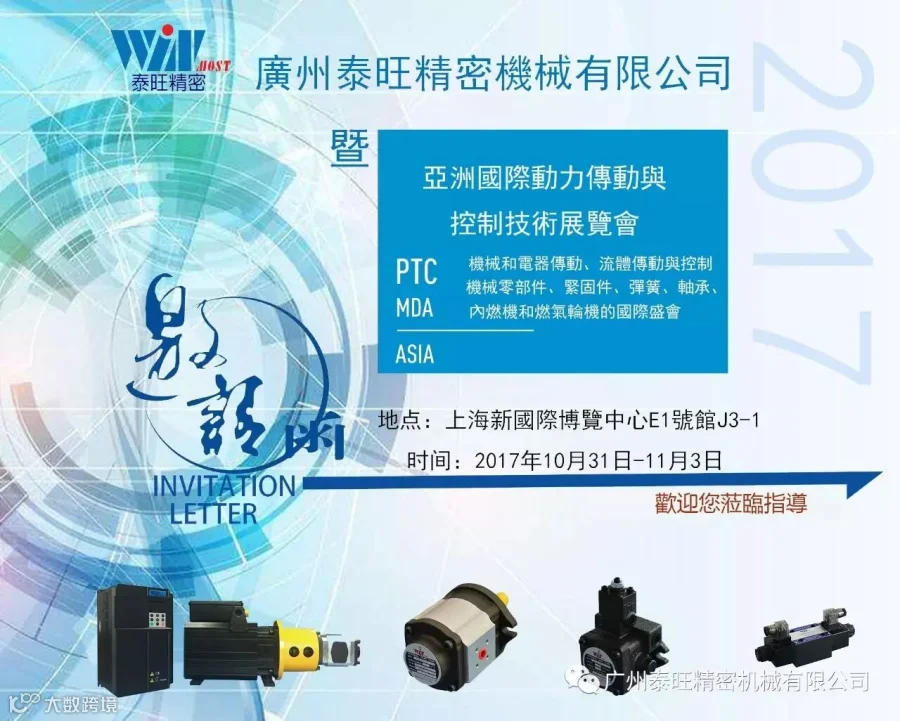广州泰旺精密机械有限公司诚邀您莅临2017亚洲国际动力传动与控制技术展览会上海新国际博览中心E1号馆J3-1泰旺精密展厅。