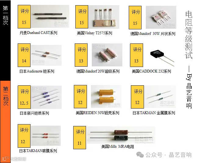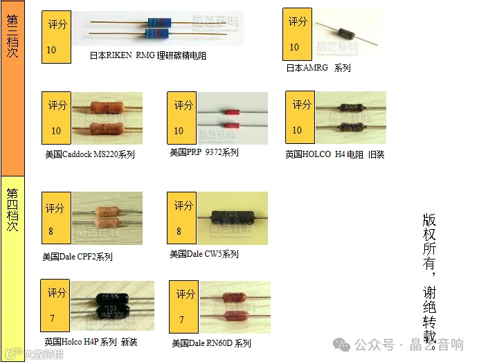 下面列出一些DIY摩机里面用到的电阻,这些大部分很难在成品的品牌机里面出现,因为成本较高。除下面列出的电阻外,剩下多是工业用或者贴片电阻,这类电阻就基本属于声音较差的,不推荐DIY使用,不再列举。