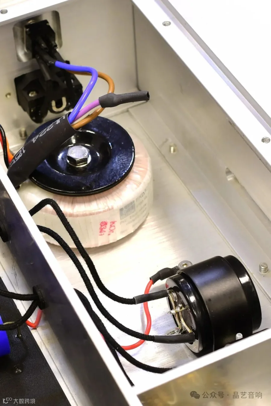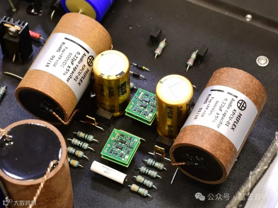 放大的两个运放均采用美国的极品级分立模块,一个负责电压放大,一个负责电流放大。通过测试,该模块声音超过AD827SQ与其他一些金封品,裸露的没有封装的特点,直接地降低封装塑胶的音染,因而声音相当纯净。线路上的反馈回路采用日本KAISEI快晴无极电解,旁路位置采用日本极品的双信银云母电容,其他电阻采用日本TAKMAN金属膜,关键信号位置采用美国T2575片状裸封电阻。波兰的MIFLEX铜箔油浸电容增强反馈的高频响应。