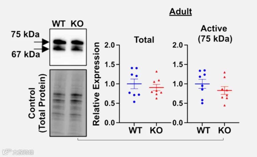 作为研究实验的关键部分,Western Blot数据提供了P2X7在海马体中的表达变化的直接证据。可能是由于传统管家蛋白有可能会在神经发育过程中产生不稳定的变化,研究人员改用Stain-Free获得的总蛋白作为WB归一化内参,保证了数据的精准可靠。