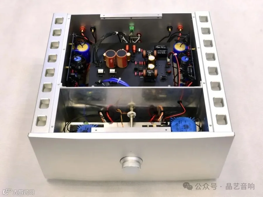 制作一台好的合拼机是一项相当复杂的工程,特别是对于保证高音质的前提下,其安装与布局都需要十分考究。尽可能不使用接插件连接,减低接插件对音质的破坏,都会大大地增加安装调试的难度。下面是晶艺的一款达到HI END级别的合拼机。