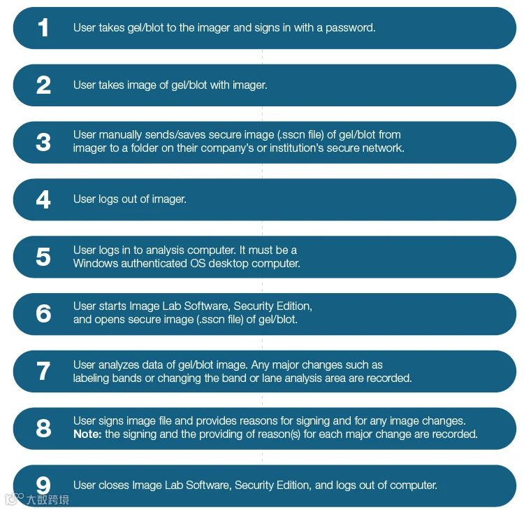 这些功能支持监管实验室制定和执行其 SOP,并与 Bio-Rad 的Image Lab软件无缝连接。作为一款基于 PC 的应用程序,Image Lab软件安全版专为在受监管环境中工作的实验室量身定制,提供更高级的图像分析和处理选项。端到端监管合规始于使用Image Lab触摸软件安全获取图像,最终使用Image Lab软件安全版增强图像分析。这些工具共同为合规性和高级成像工作流程提供了坚实的基础,为与 Bio-Rad 的先进成像系统的集成铺平了道路。