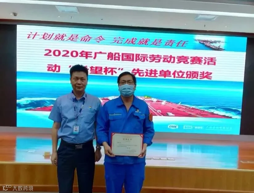 广船国际党委书记、董事长陈忠前为管业公司总经理周圣平颁奖