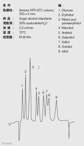 多用于甜味剂分析。它不仅适合单糖分析,也可用于二糖、三糖以及四糖的分离,对于高果糖玉米糖浆的葡萄糖和果糖可以做到精准定量。