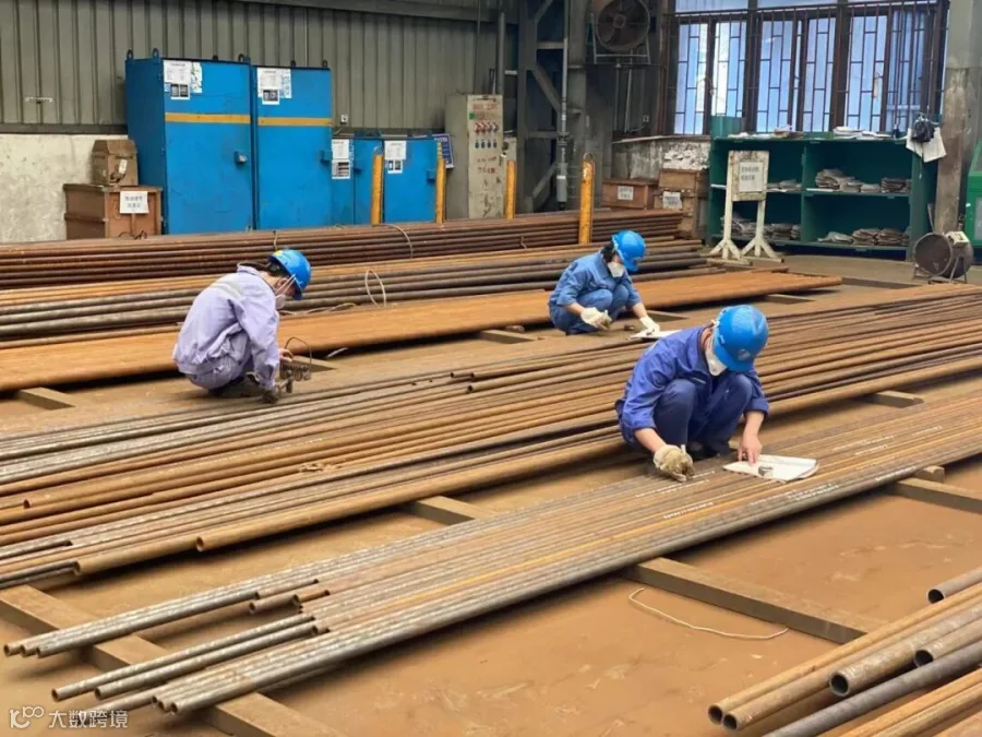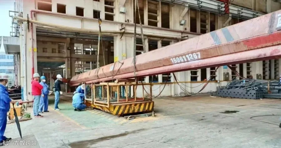 配套部集配工段,员工们认真核对托盘,对G1107船上建区域管子进行分托;总装部起运课运输车辆全程配合配送G1107船货油舱的加热盘管,共同做好管子分托和配送工作。
