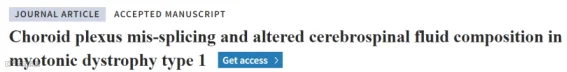 参考文献:Choroid plexus mis-splicing and altered cerebrospinal fluid composition in myotonic dystrophy type 1, Brain. 2023 May