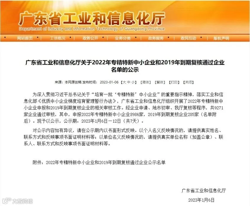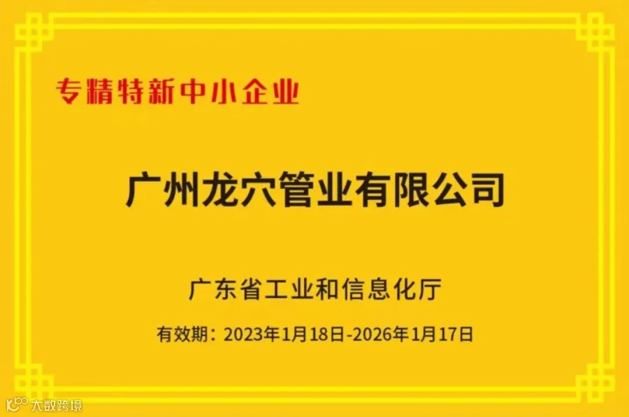 2023年1月6日,广东省工业和信息化厅和广东省科学技术厅几乎同时公示“广东省专精特新中小企业”、“广东省工程技术研究中心”名单,且先后于2月9日、2月21日正式发文通知龙穴管业取得了两项荣誉评定。