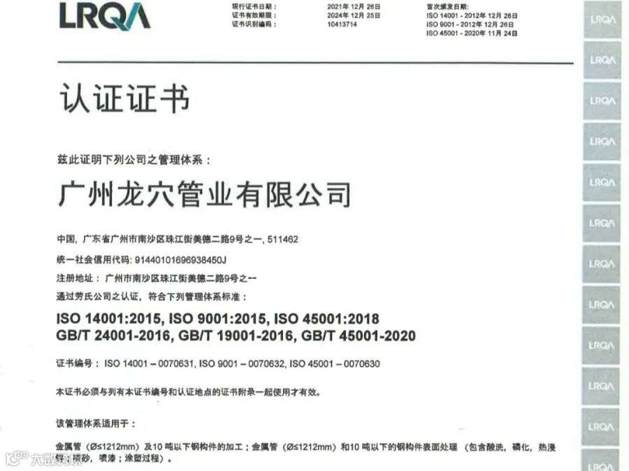 广州龙穴管业有限公司成立于2009年11月20日,由中国船舶集团旗下广船国际有限公司、中船科技股份有限公司、上海船舶工艺研究所共同投资组建。