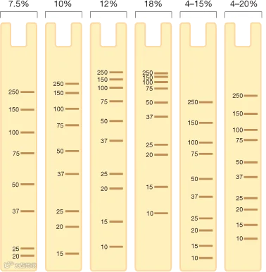 与常用的等度胶不同,梯度胶在整个凝胶中呈现从低到高的浓度分布。