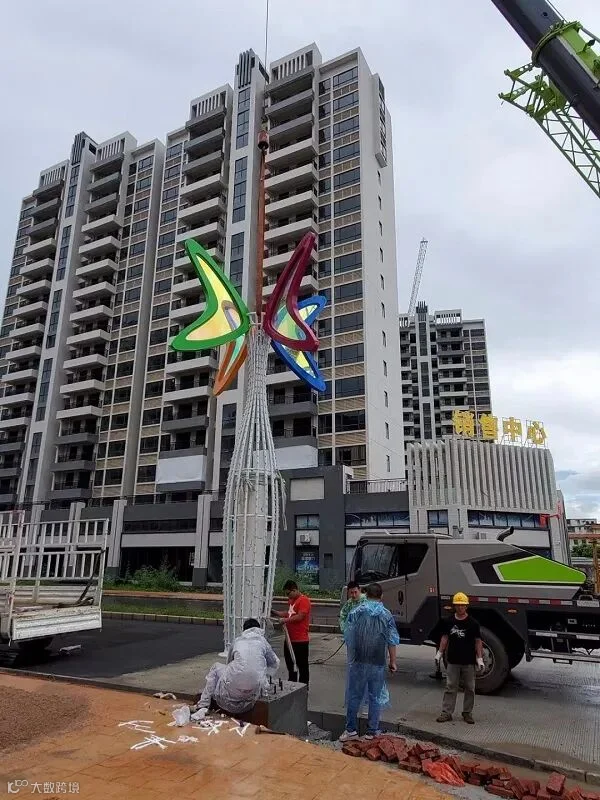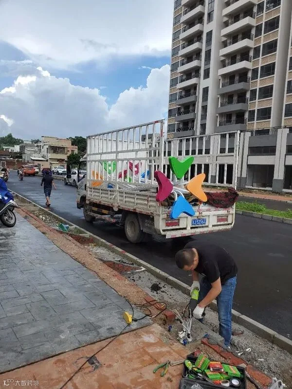我司作为千会城整体建筑的户外配套灯具供应商,经过半个月的生产时间,诞生了好看实用的成品。现在,景观灯经过车辆运输来到了现场,准备进行安装。