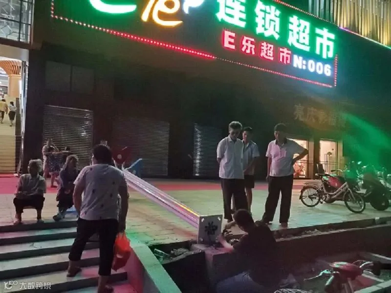 为了赶工,工作人员们挑灯夜战,附近的居民很有兴趣地前来围观,看得十分入神,开心地讨论着,期待着即将到来的繁华商场夜景。