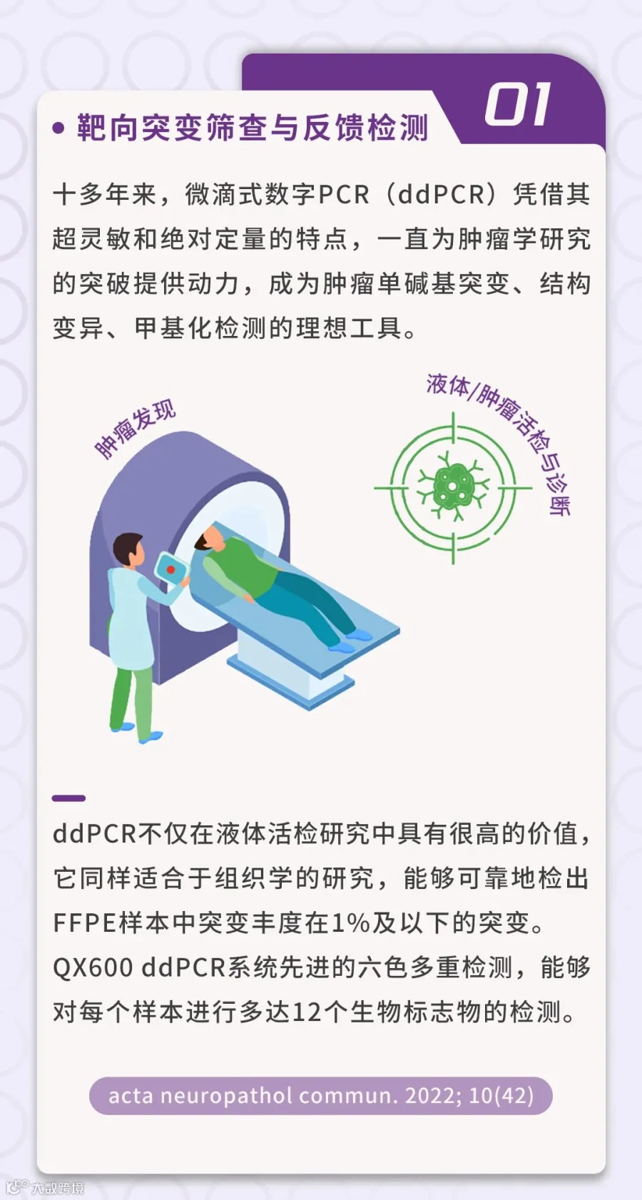 QX600 微滴读取仪是一款全新的六色微滴式数字 PCR 读取仪,它提供了与您所期望的 Bio-RadddPCR 系统相同的最佳性能,更多检测通道提供了更多重检测的可能。QX600微滴读取仪的应用范围很广,包括稀有突变检测、基因表达分析、基因组编辑检测、拷贝数变异分析、多重突变筛选、病毒滴度定量、污染测试,以及病原体检测,如COVID-19。为了获得最大的灵活性, QX200 系统的耗材和试剂可以在 QX600 系统上使用。