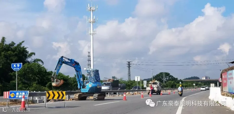 新会市政工程--新中一级公路,道路照明工程,顺利施工中