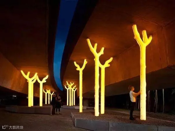悉尼Aspire lighting项目是一个发光的树林,由高密度聚乙烯、钢铁和LED灯构成,这一设计焕发了高速公路地下通道的生机,并可用于支撑高速公路上面的道路。