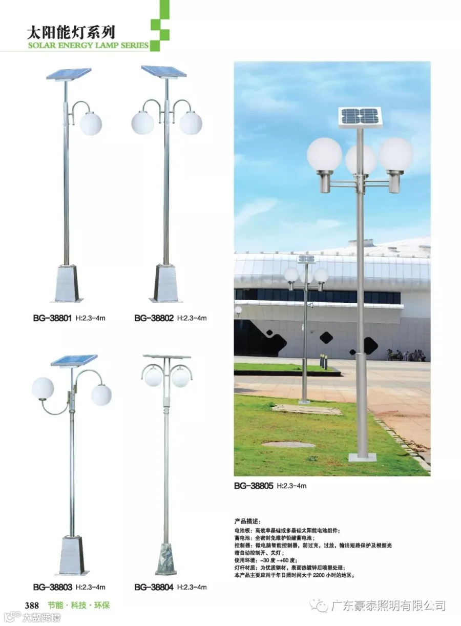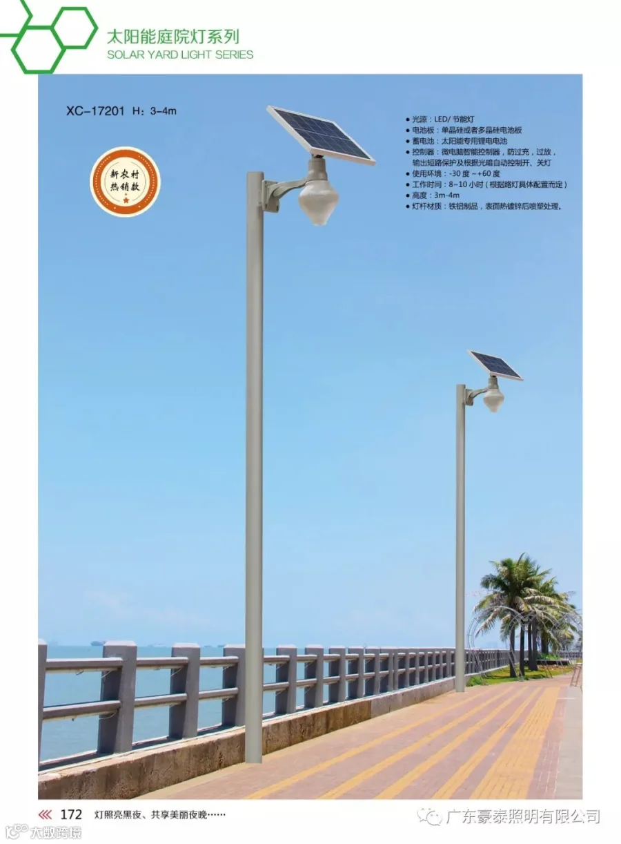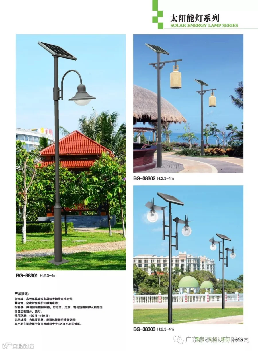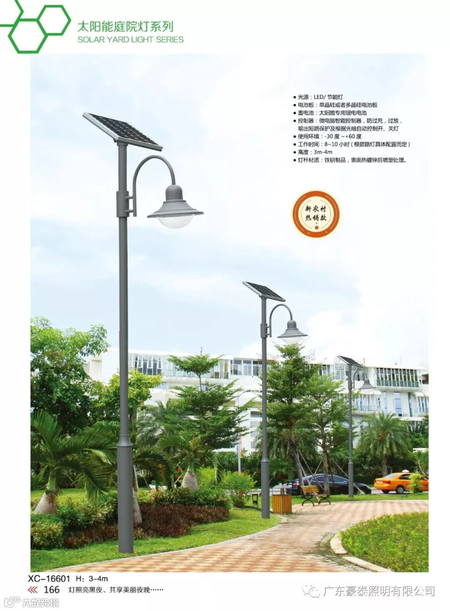 太阳能庭院灯主要靠 太阳能电池板发电,通过 太阳能控制器把电能储存到 蓄电池中,无需人工控制,不管春夏秋冬可自动依据光线明暗水平,自动开启与关闭,一切充电、放电、开启与封闭完全完成智能化与 自动化控制。太阳能电池板在光照良好的状况下 光电转换率达16%,运用寿命可达30年; 太阳能路灯控制器采用光控+时控、防水、防寒一体化设计,大大降低故障率;光源采用太阳能庭院灯专用 LED光源, 发光效率高、实际运用寿命大于50000小时;灯体采用Q235优质钢材焊接而成,外表镀锌喷塑、防腐处置,不生锈,耐老化,表面光洁,抗风大于9级。