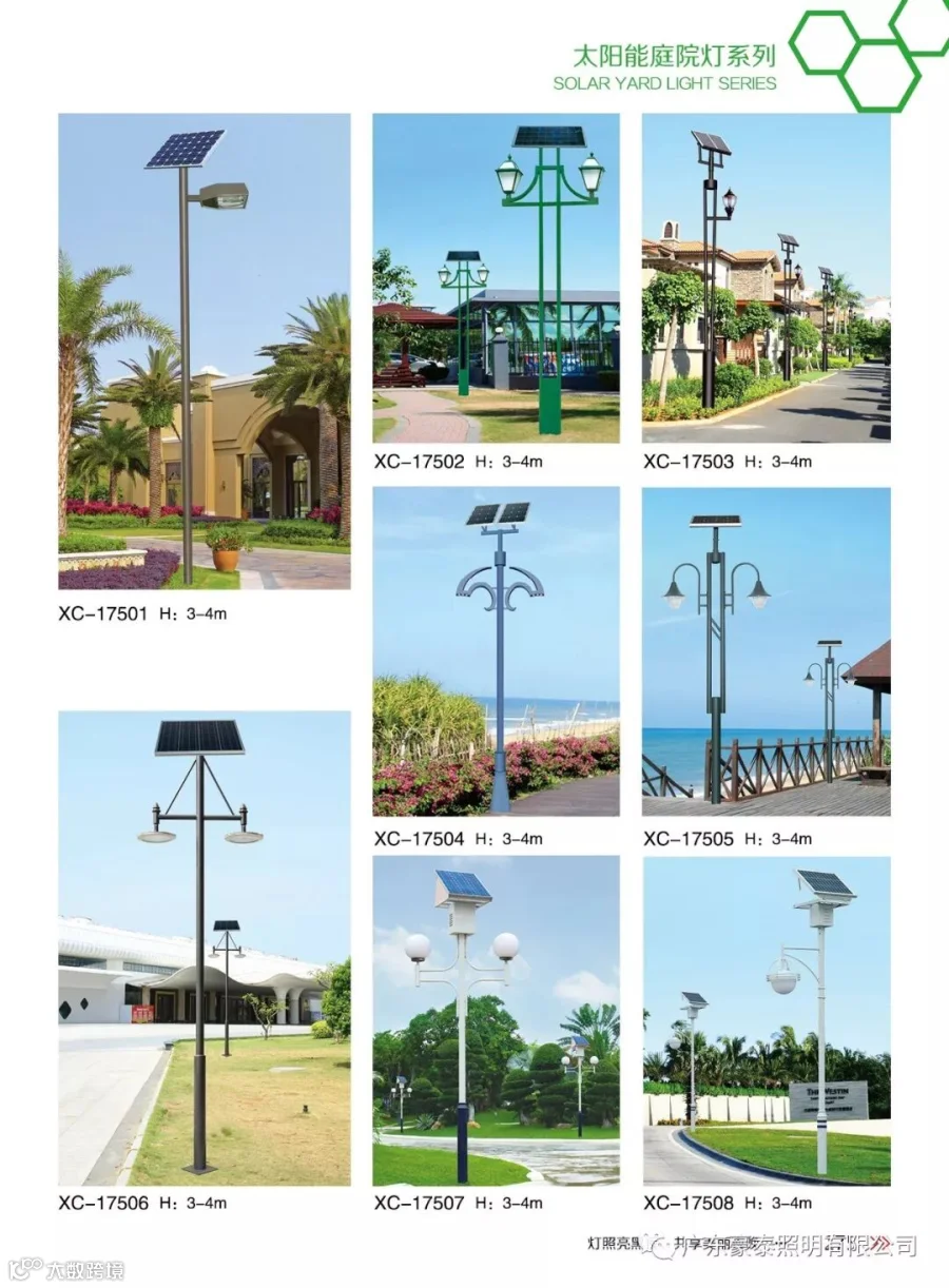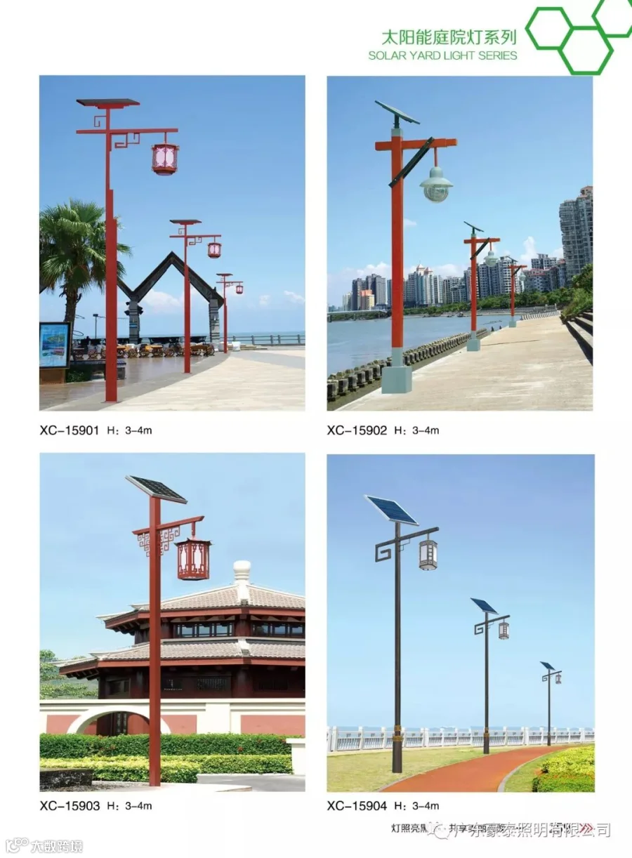 庭院灯系列灯饰照明是园林景区、文化休闲娱乐广场、步行街、商业街、住宅小区、行车道两侧等场所普遍使用的装饰及照明光源配置形式,是装饰型照明灯饰产品。杆体材质多样,光源运用灵活多变,结构形态千姿百态,是美化、亮化、绿化有机结合,光与影、灯与艺术的完美结晶。
