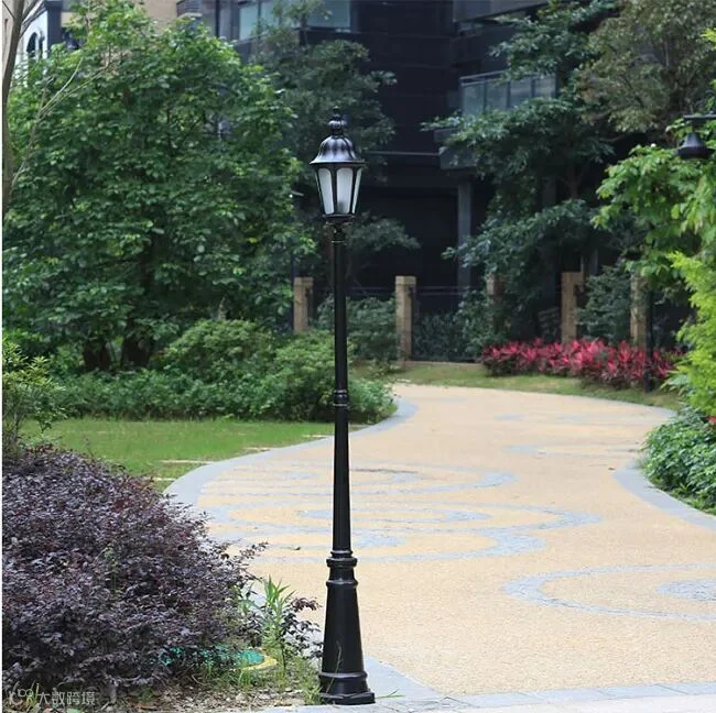 2.2米高度庭院灯,与楼房和绿色植物十分搭配。