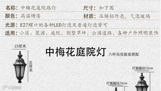 0.9和1.1米的高度适合用于小区草地,花园庭院