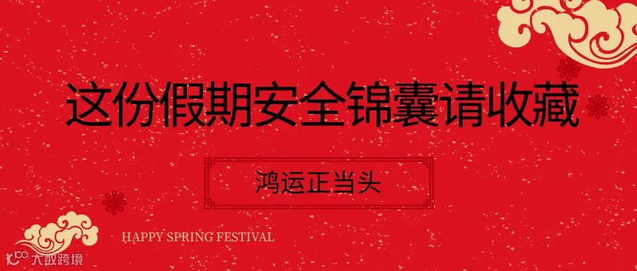 春节假期即将到来,请大家时刻不要放松的自身及家人的安全监控,用心陪伴家人度过一个健康、安全、幸福、祥和的春节。
