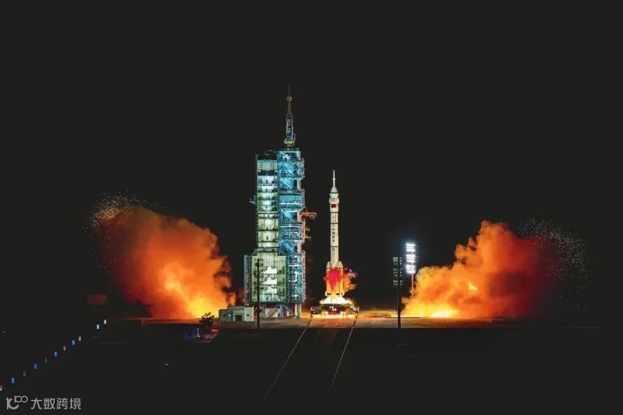 火箭托举飞船腾空而去,照亮天穹。