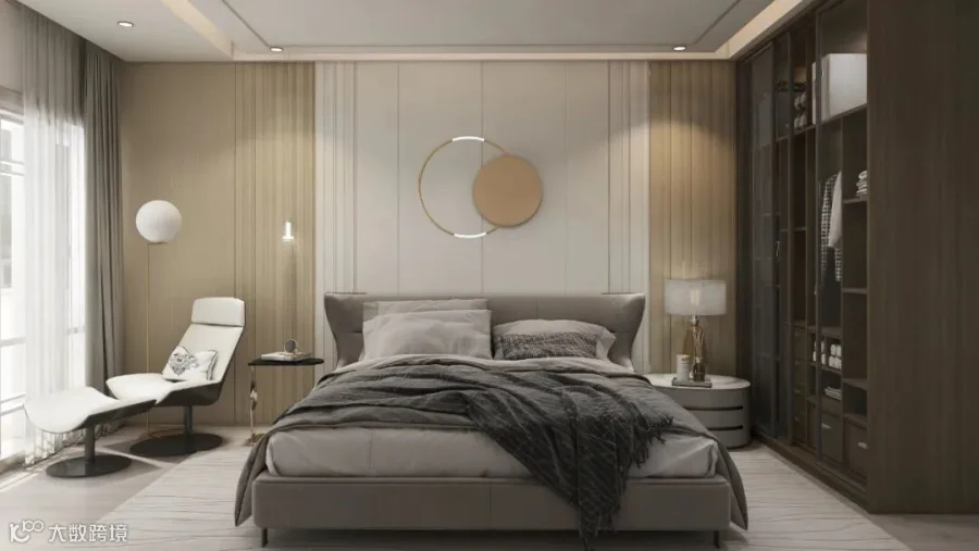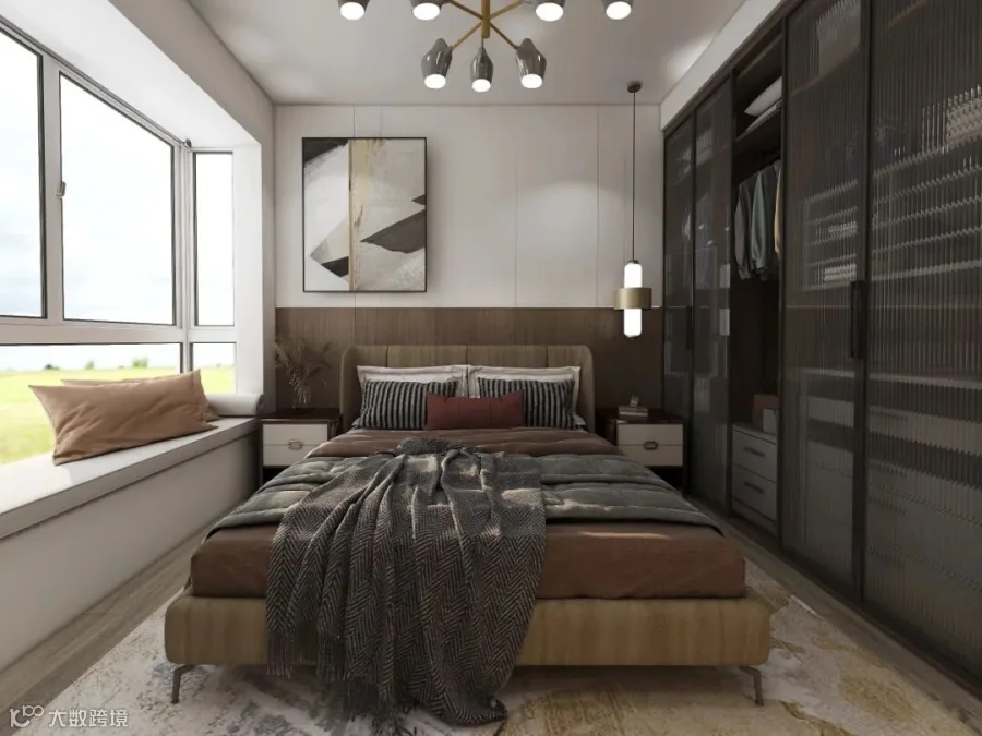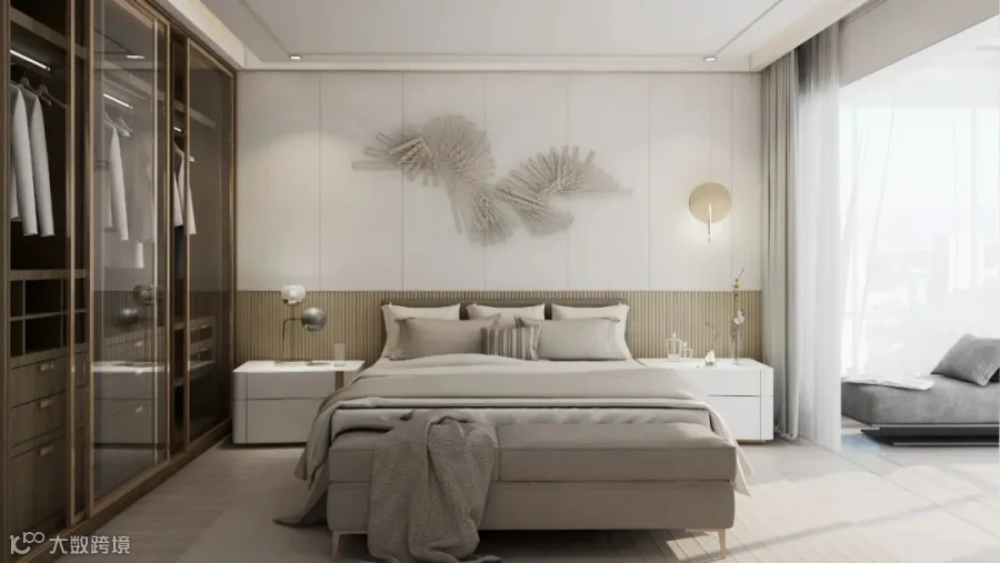 这套轻奢卧室的搭配风格淡雅素净,低调的质感,优雅的基调,点缀低饱和度的橘色,一种浪漫诗意与空间设计共感,衬托出休憩空间的舒适氛围。