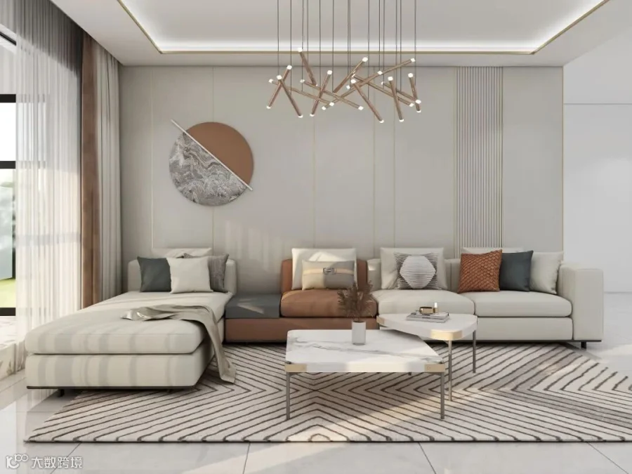 轻奢风家居十分注重高级生活质感的打造,造型线条干净流畅,色调新潮时尚,工艺精妙考究,加上金属线条、玻璃、灯光等元素的融入,精致又显高级,十分受人们的欢迎。
