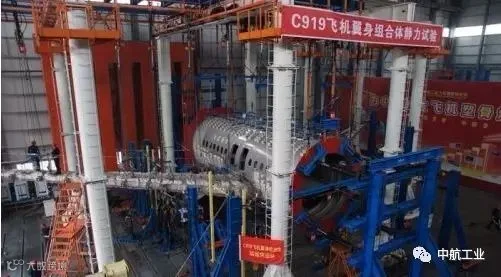 强度所在阎良新区顺利完成C919飞机翼身组合体-1g静力试验150%限制载荷试验。