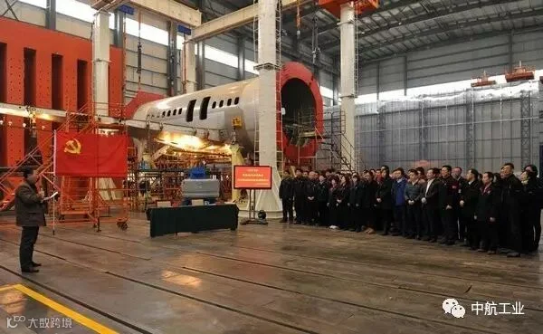 C919大型客机翼身组合体综合验证项目试验件开铆仪式在西飞603厂房举行。