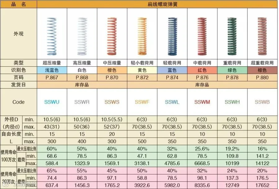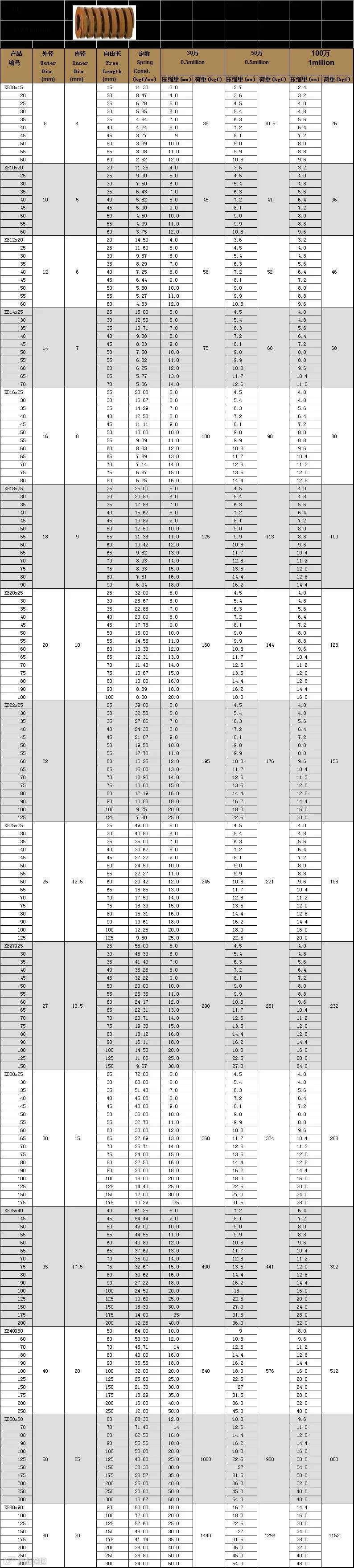 在相同空间内,正方形截面钢丝弹簧承载能力比圆截面簧要高43-48%。显而易见,矩形簧要大于50%以上。