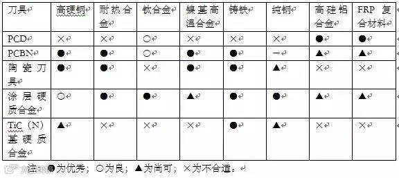 高速切削刀具主要材料表