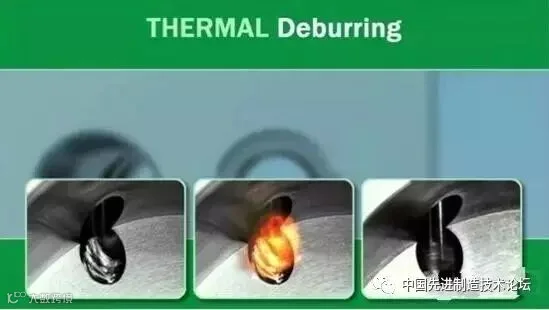热力去毛刺(TED )是用氢氧气体或氧与天然气形成时混合气爆燃后产生的高温将毛刺烧掉。是将氧气和氧气或天燃气和氧气通入一个密闭的容器内,经火花塞点火, 使混合气在瞬时内爆燃放出大量的热能而去除毛刺。但工件经过燃爆燃烧后, 其氧化粉末会附着工件表面上, 必须加以清洗或酸洗。
