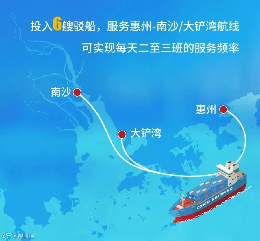 除”双惠“航线外,惠州地区IC64航线,目前已投入6艘驳船,往返惠州-南沙/大铲湾,服务频率高达每天二至三班。