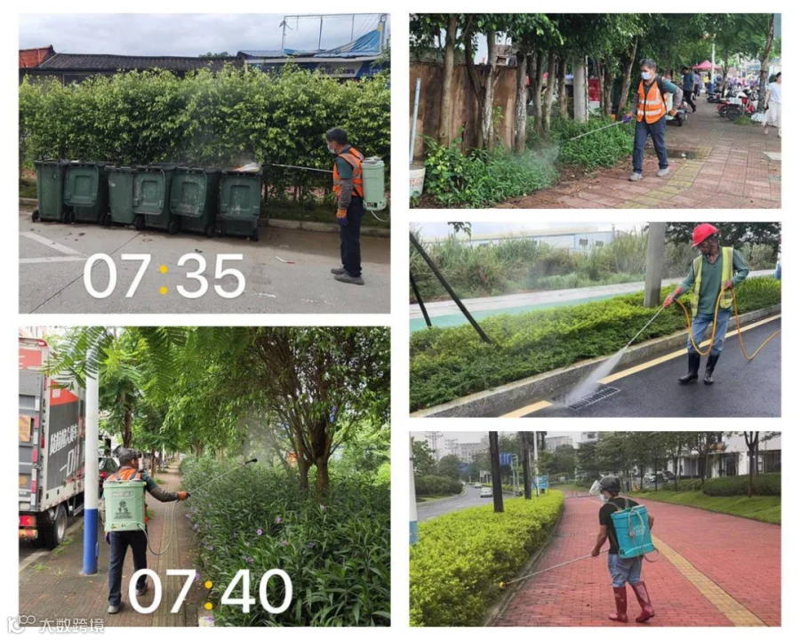 平台公司行动迅速,全面启动专项防治工作:针对园区道路、绿化带、垃圾站及公共设施等公共区域,集中进行低毒环保型杀虫剂喷洒,有效杀灭成蚊;及时清理整治卫生死角,彻底清除各类积水容器、废弃杂物,铲除蚊虫孳生环境。