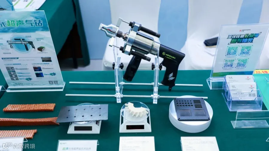 聚焦汇专的展台,亦是看点满满,现场展示了超声加工技术、超声切割直刃刀套装、手持式超声气钻、超硬刀具等展品,以及芳纶纸蜂窝材料、碳纤维复合材料、氧化铝陶瓷叶盘等加工工件。
