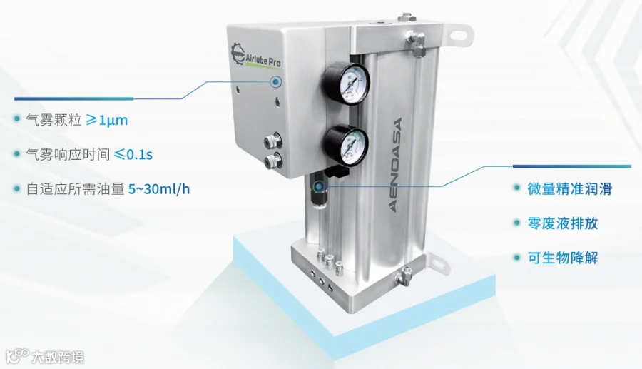 微量润滑(MQL)内冷技术加工原理是将微量润滑油经压缩空气和特殊喷嘴雾化形成微米级气雾颗粒 (≥1μm),并喷射至切削区域实现微量精准润滑,实现零废液排放,可生物降解。微量润滑技术(MQL)系统适用于主轴内冷传输,气雾响应时间≤0.1s,响应快速,切换不同刀具后,可自动适配所需的润滑油量为5~30ml/h,可有效提高加工效率、节约能源、降低成本、改善环境。