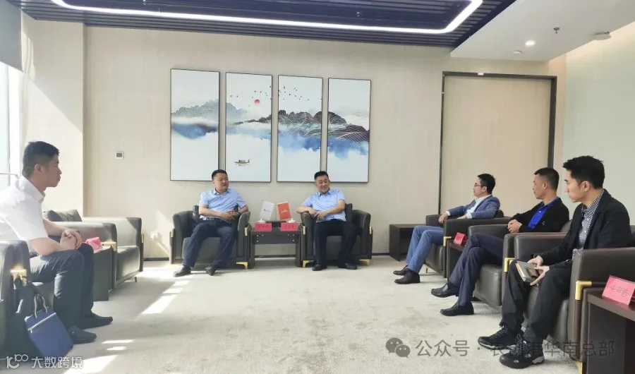 2025年4月16日,广州。在第137届广交会期间,潍坊市商务局书记郭永超率团访问中国农创港华南总部,与董事长吴全东等达成共建“潍坊海外展销中心”等深度合作共识。
