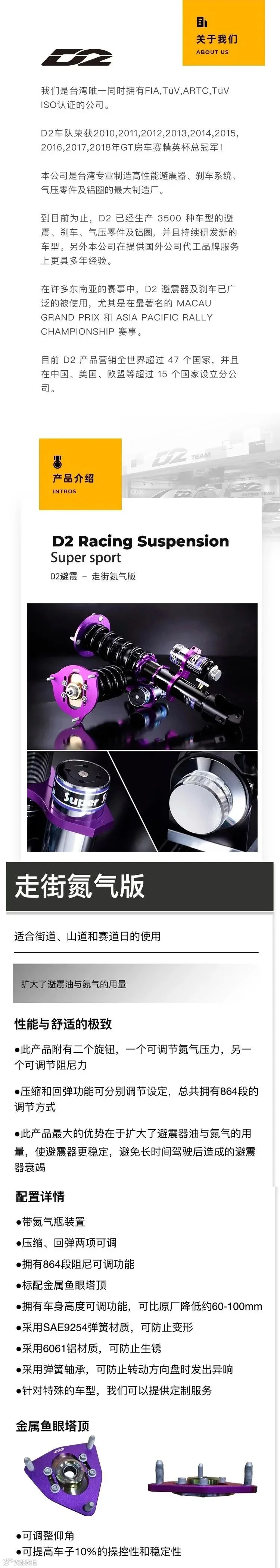更多详情价格情况可登录官网查询:http://www.d2-race.com