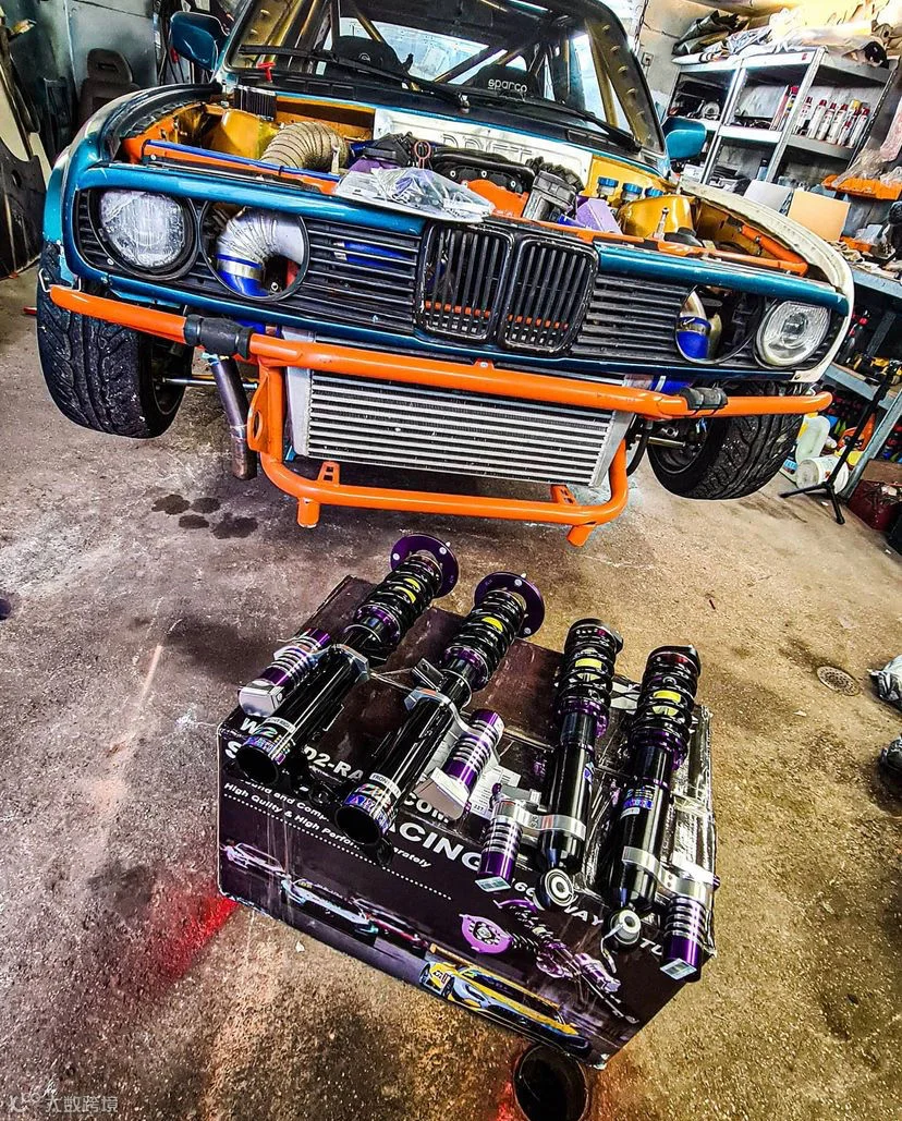 底盘部分改装了D2避震器(3WAY竞技版本),此产品最大的优势在于此产品可扩大避震器油与氮气用量,因此可使避震器更稳定,并且避免在长时间消耗下而产生避震器油温度过高,而造成避震器衰竭,通常使用于竞技、拉力柏油、甩尾与直线加速情况。