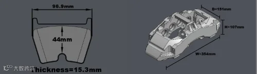 *D2此4活塞后煞车系统碟盘尺寸是356*32mm,适用于18吋或18吋以上车轮。